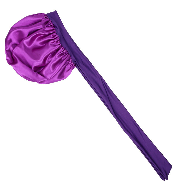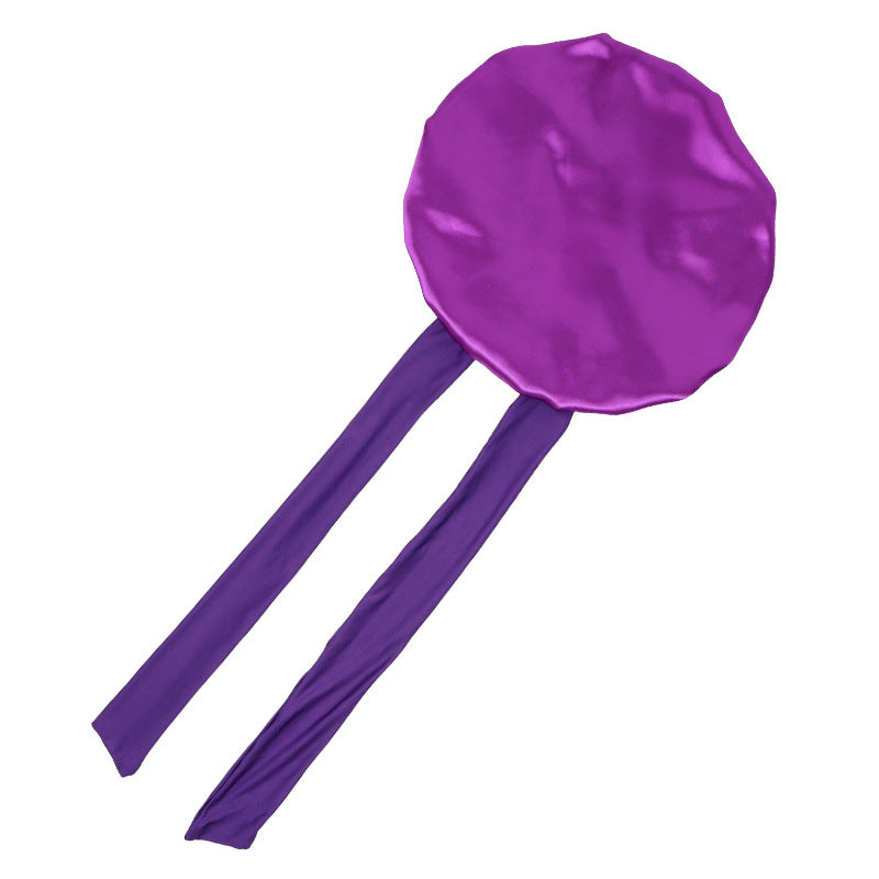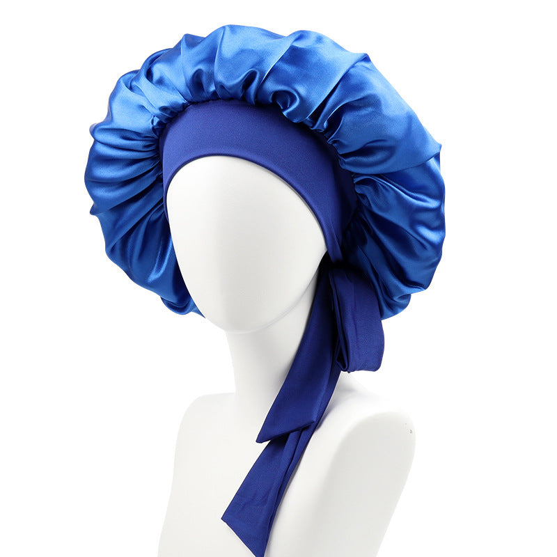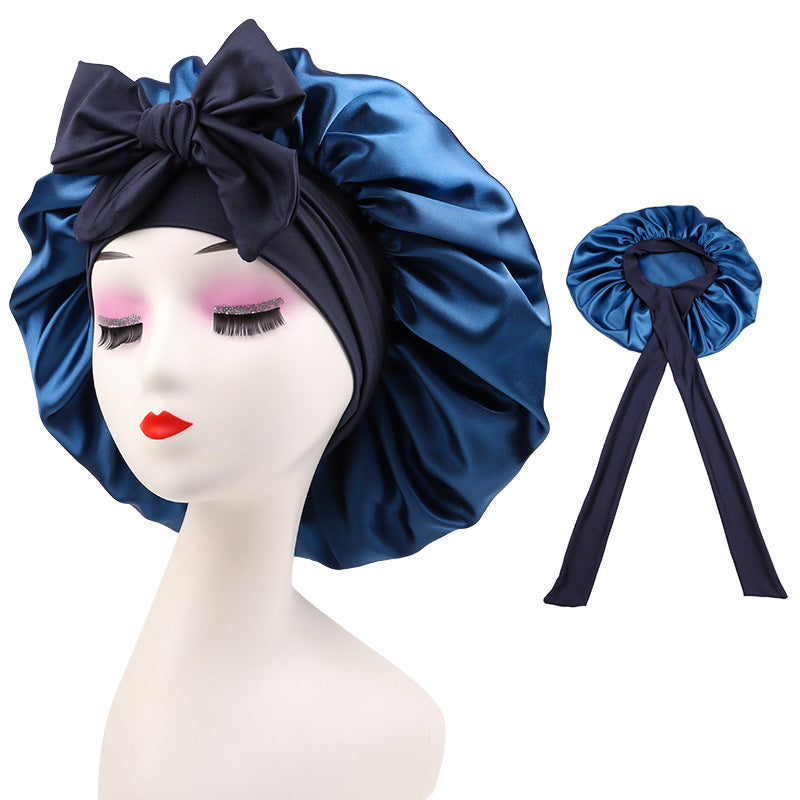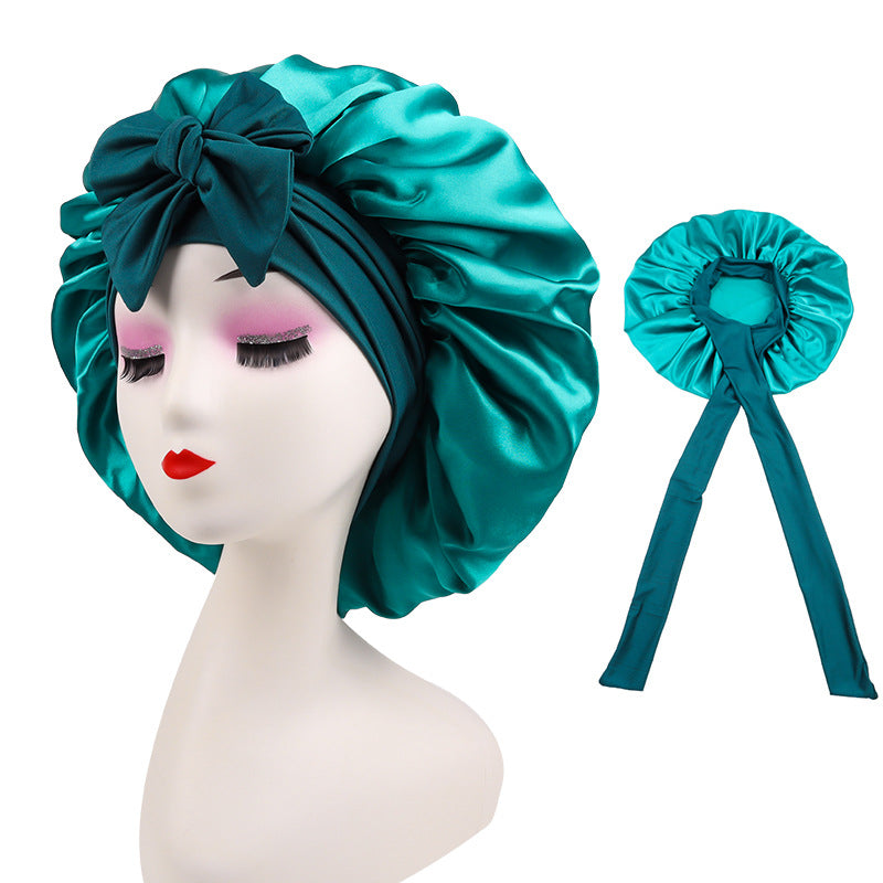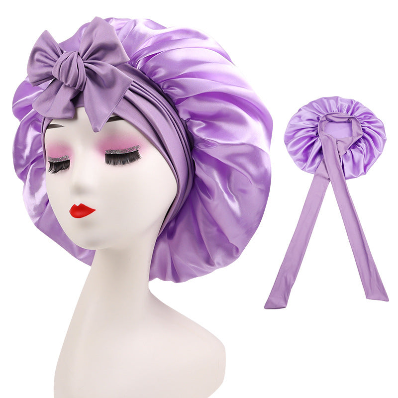 Solid Hue Women's Long Hair Satin Sleep Makeup Cap Elastic Ribbon Knotted Design